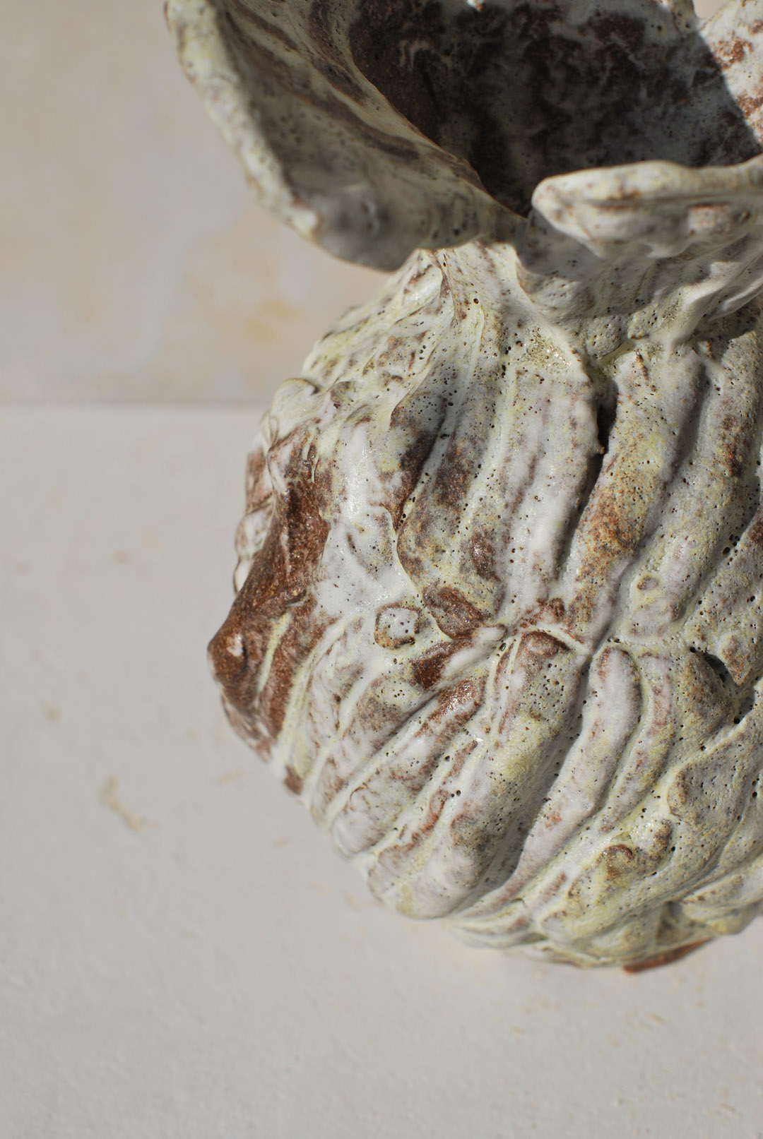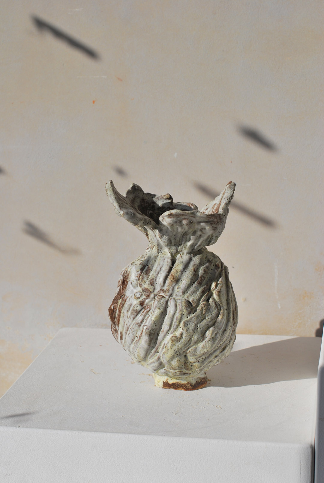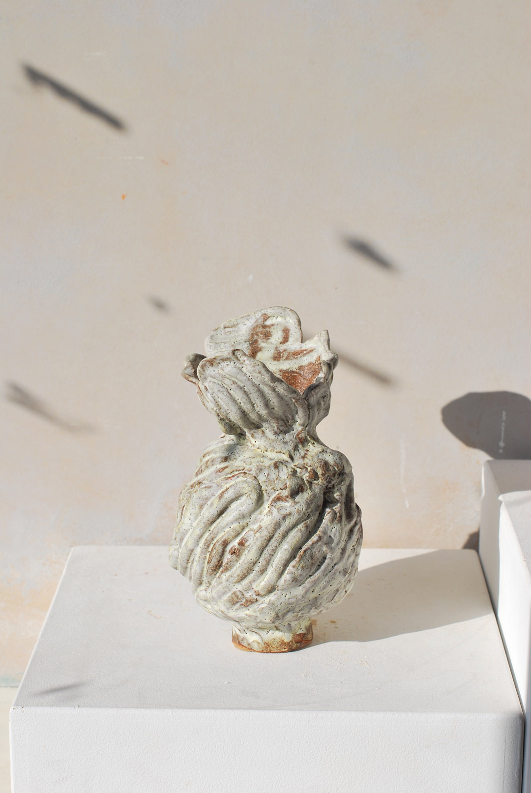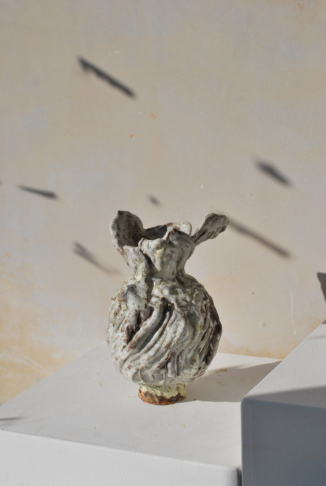 The pieces are assembled on a base into a classical vase informed by Tulips, before being glazed with a matte white glaze layered on a porcelain slip.